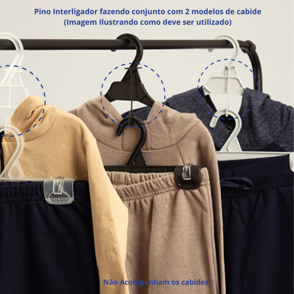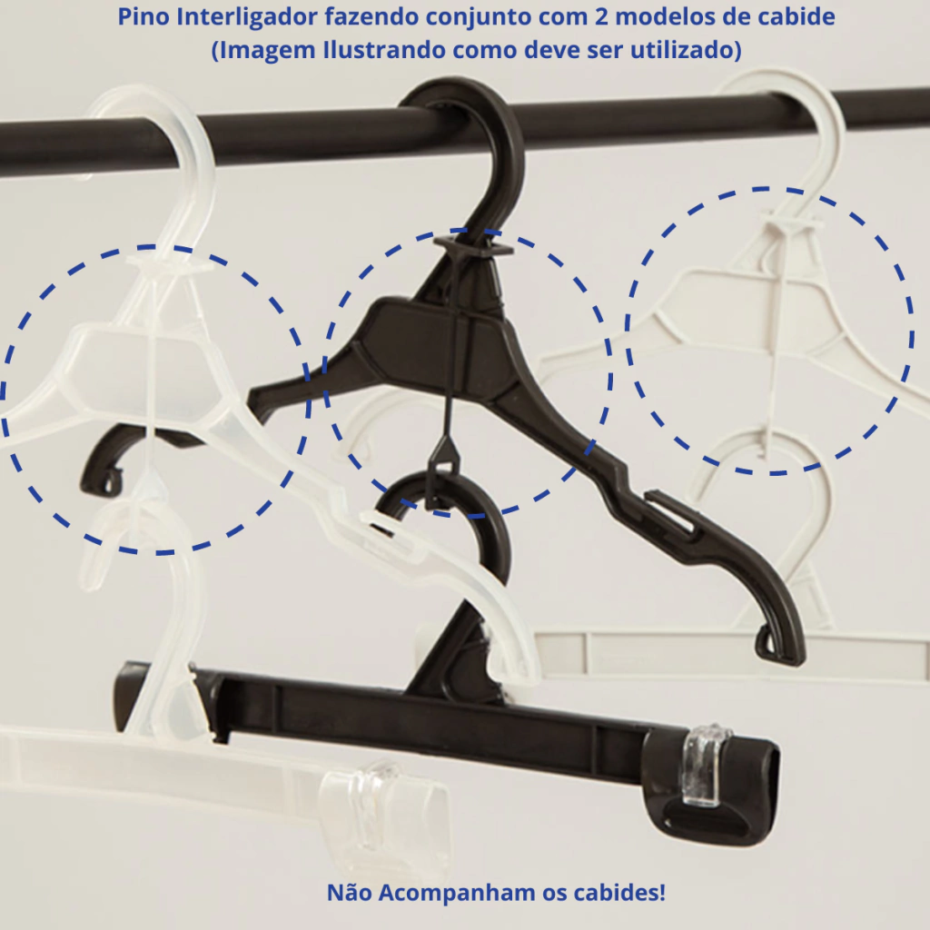 Trazendo inovação para a sua loja! Apresentamos nosso pino interligador, a peça que transforma cabides comuns em verdadeiros cabides de conjunto.
